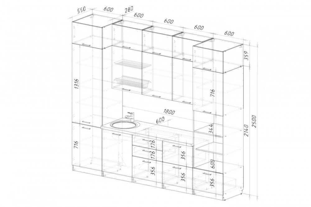 Ширина: 3000 мм; Глубина: 600 мм (со столешницей)