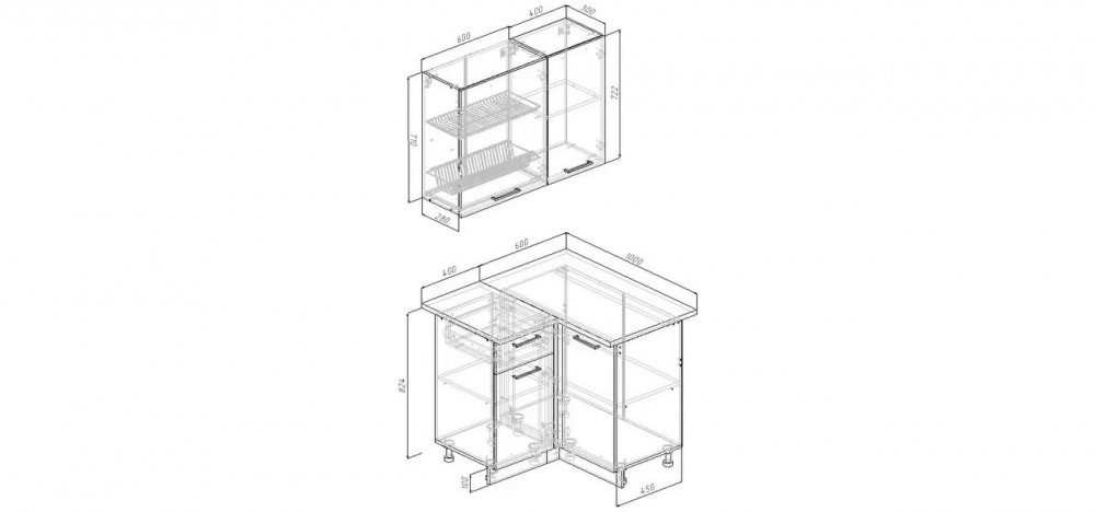 Фасады верхних модулей со свесом 12 мм дают возможность использовать без установки ручек.