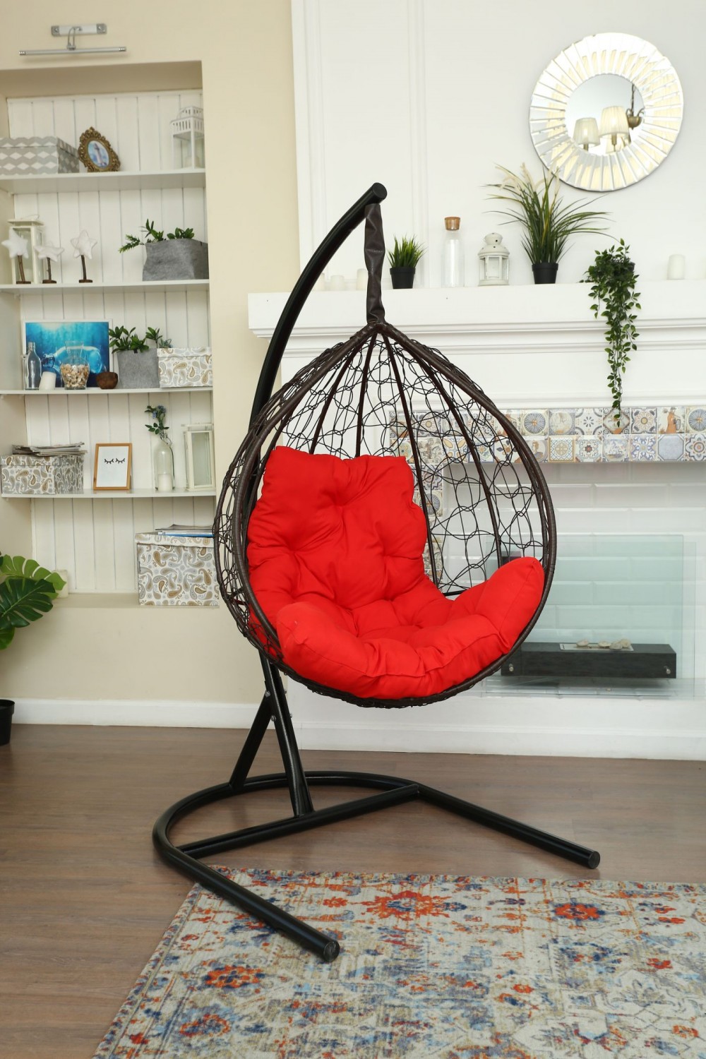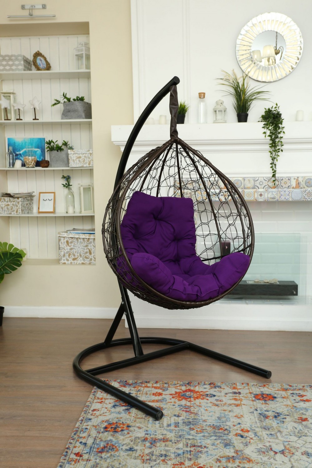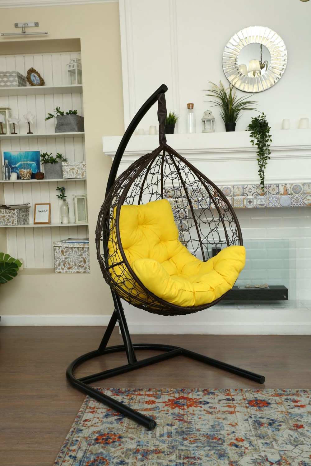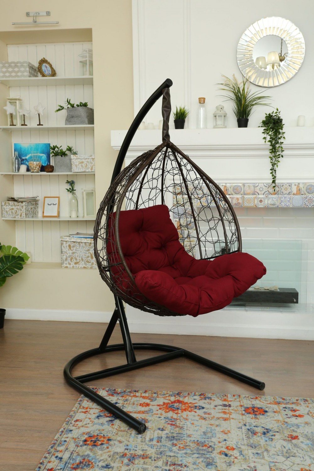 Стойка - стальная диаметр 51 мм, толщина 3 мм. Покрытие порошковой краской. Кокон - стальной каркас с оплетенным экоротангом. Подушка из Габардиновой ткани.