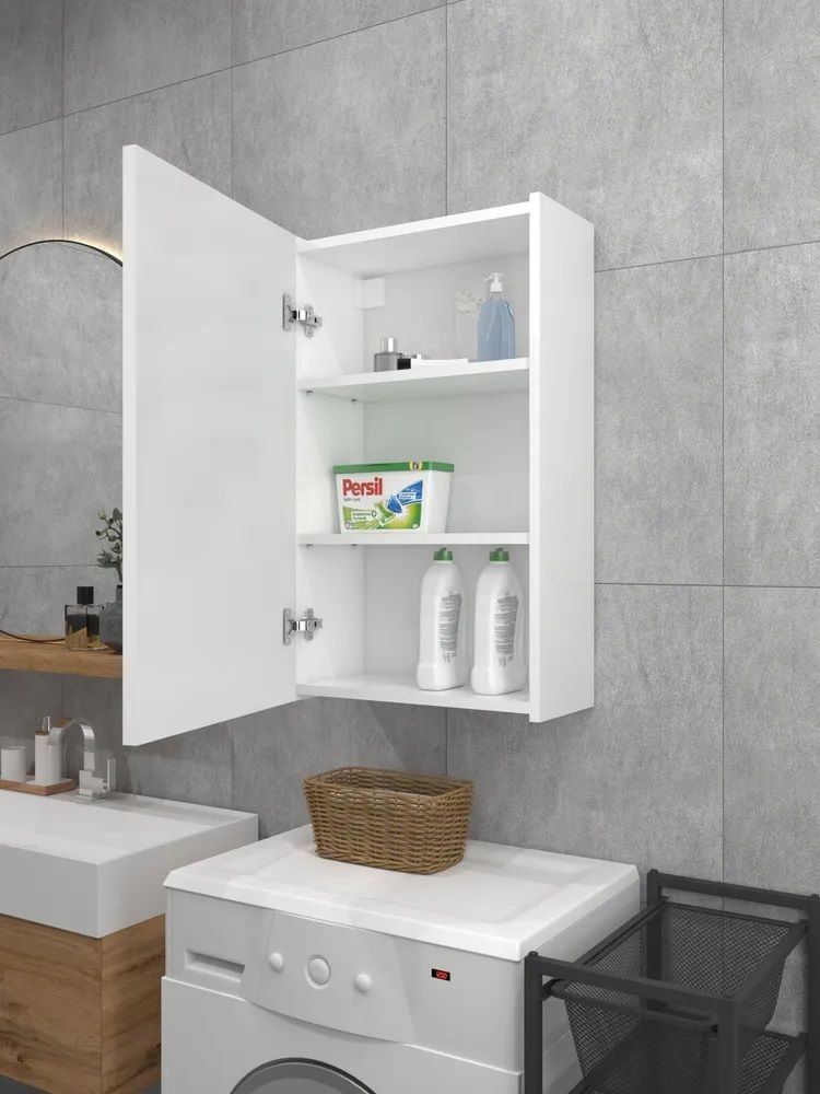 Шкаф навесной для ванной комнаты и туалета MH8-MA 750х600х217 (Белый-М 10.1.1) Белый глянец