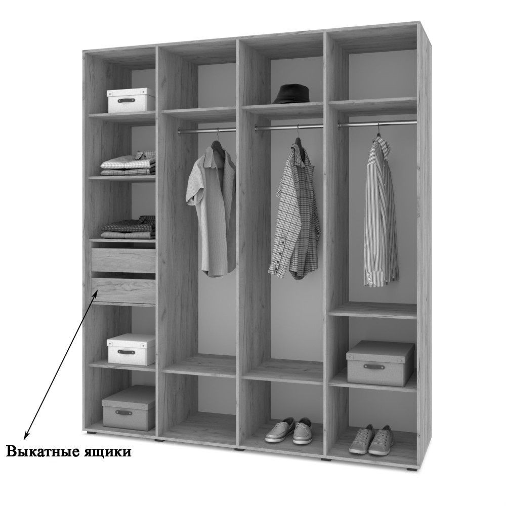 СТОУН С41 Шкаф 4-х створчатый с ящиками (серый дуб/белый)