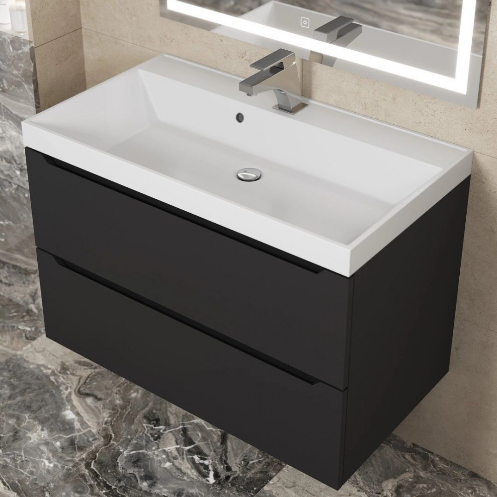 Тумба под раковину Uperwood Tanos 80 см, подвесная, черная матовая